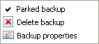 Parkering / ophævelse af parkering for selekteret / selekterede backups. Parkerede backups slettes ikke, når de ellers ville falde for aldersgrænsen. Ikonet forrest på linien ændres til et lille rødt flag.