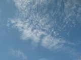 | Cirrocumulus (sildeben-, makrelskyer) over 5000m Iskrystaller og underafkølede vanddråber Mætning af luftmasse i stor højde kombineret med ustabilitet. > Opbygning af skylag indikerer at varmfrontsystem nærmer sig. | C Cc CH 2 |